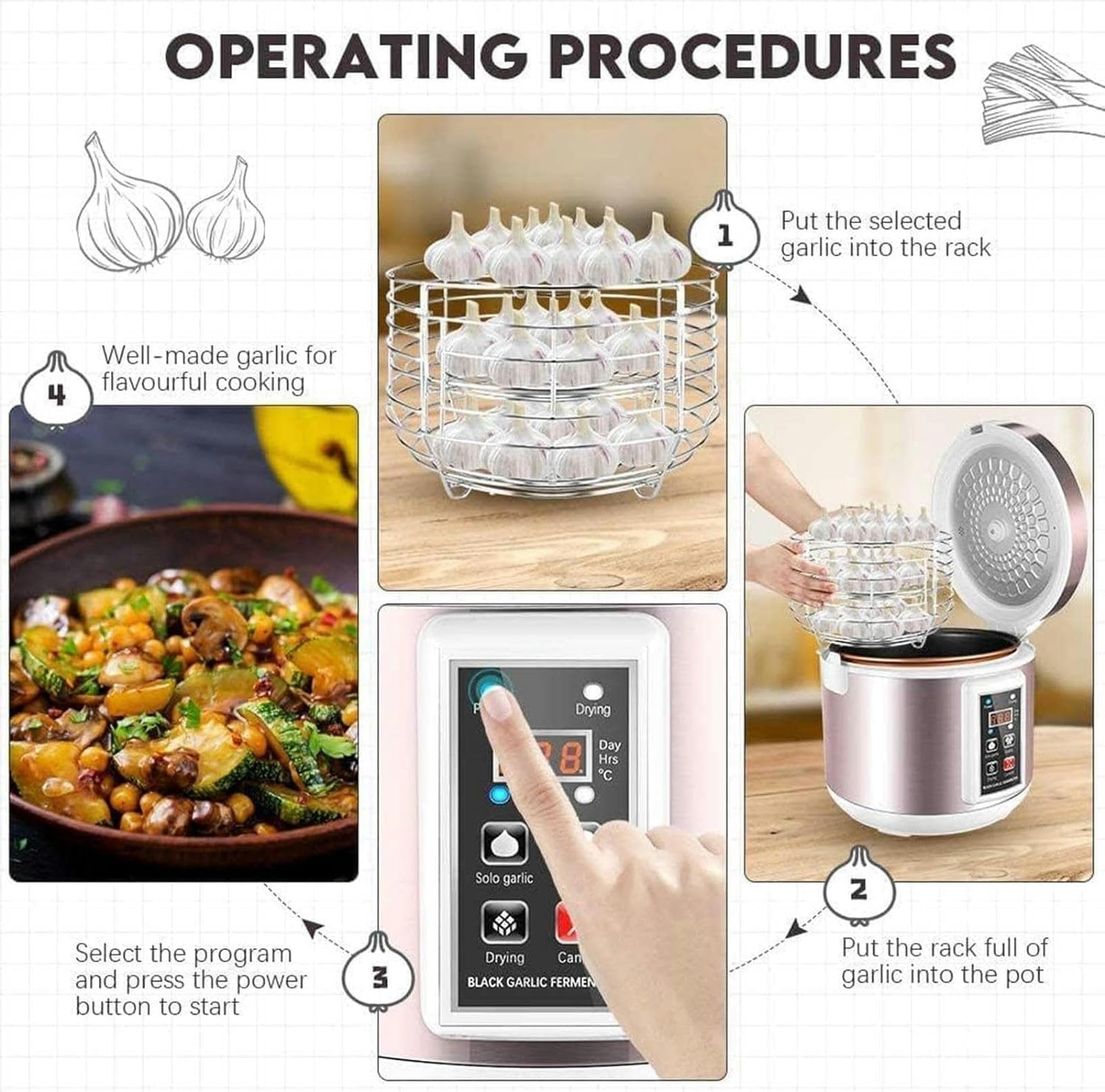 Fermentador profesional de ajo negro: alta gama, capacidad de 5 L o 6 L, con olla interna de aluminio y estructura de cuadrícula para una fermentación uniforme.