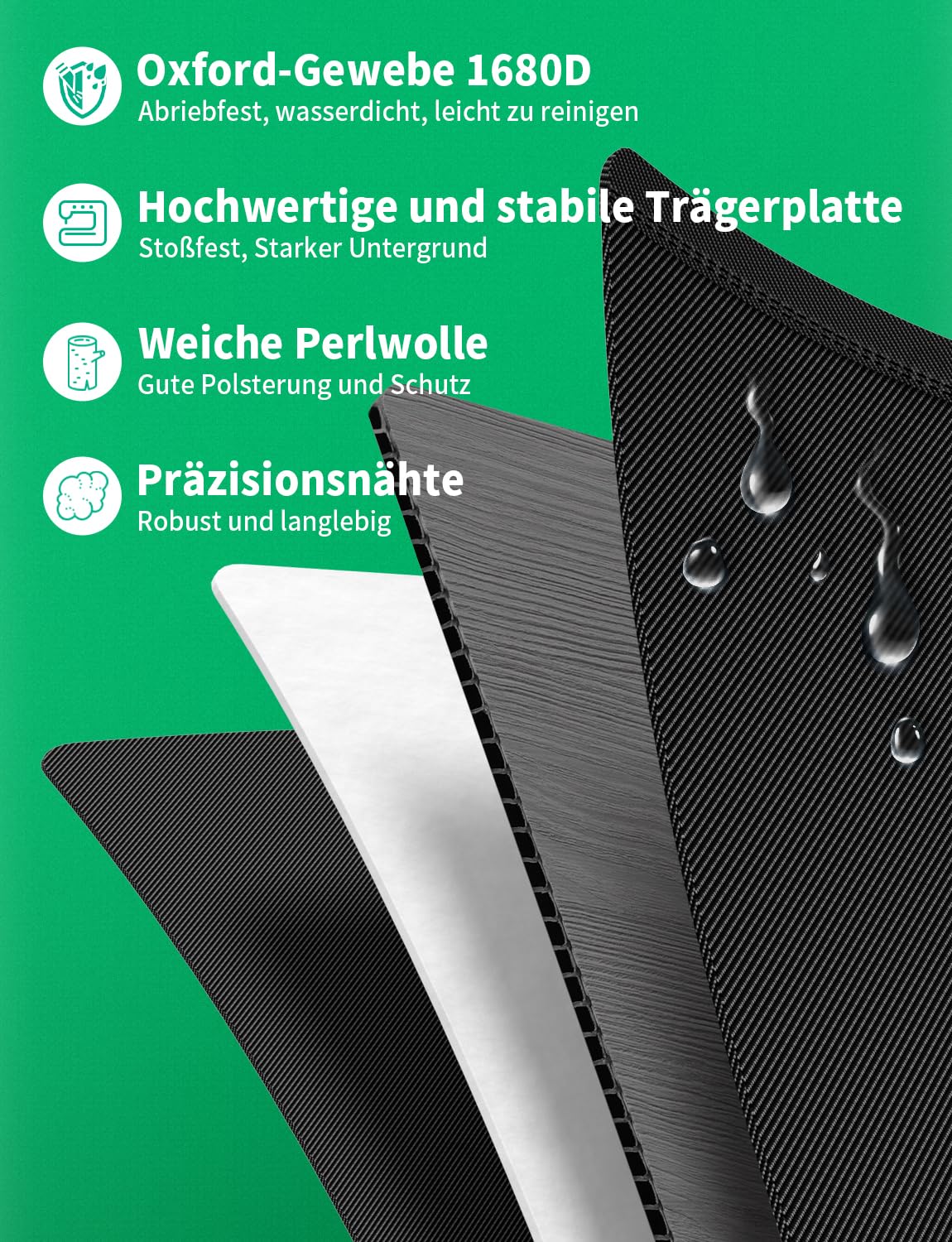 Divisores de madera sólidos y estables: La tela Oxford 1680D hace que el organizador de maletero sea resistente a la abrasión, impermeable y fácil de limpiar. La tapa, las paredes exteriores y la base están hechas de tablero de fibra de densidad media de 3 mm y algodón perlado, lo que proporciona mayor estabilidad y una capacidad de carga de 50 kg.