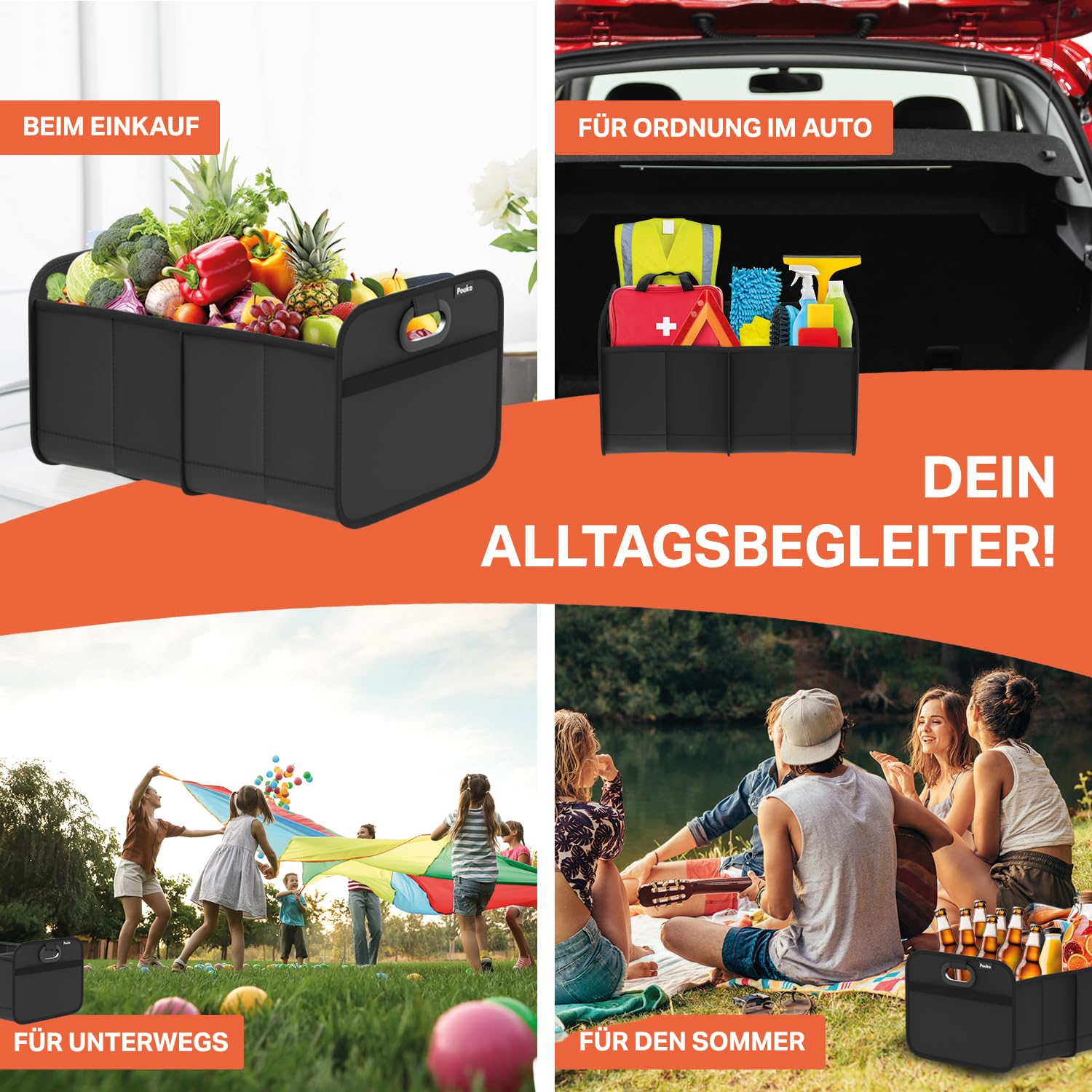⭐️ USO VERSÁTIL: La caja plegable para coche es ideal para el uso diario o para viajar. Ofrece una solución inteligente para compras, artículos de limpieza, equipo deportivo, herramientas y más. ¡Imprescindible para todos los conductores!