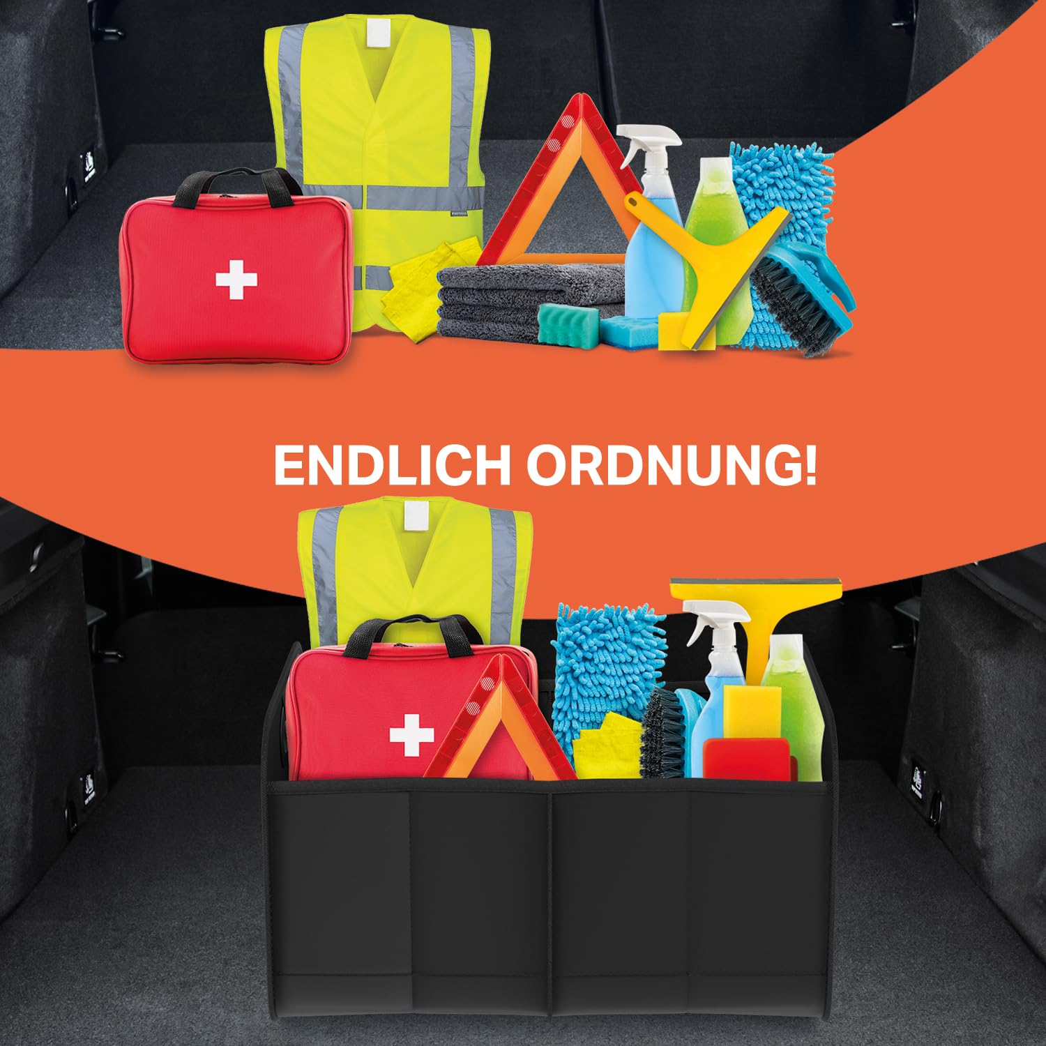 ⭐️ Tamaño práctico: A pesar de su amplio espacio de almacenamiento, la bolsa para maletero cabe fácilmente en cualquier maletero. Su sistema de plegado permite plegarla para ahorrar espacio cuando no se usa.